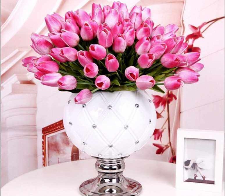 blumenstrauß-tulpen-rosa-kunstblumen