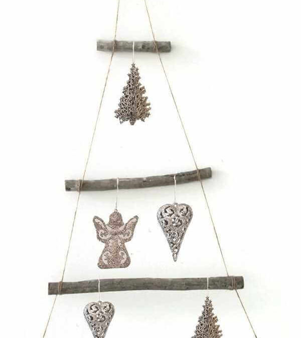 Deko Zweige Weidenhaken gebunden in Grau und Weiß